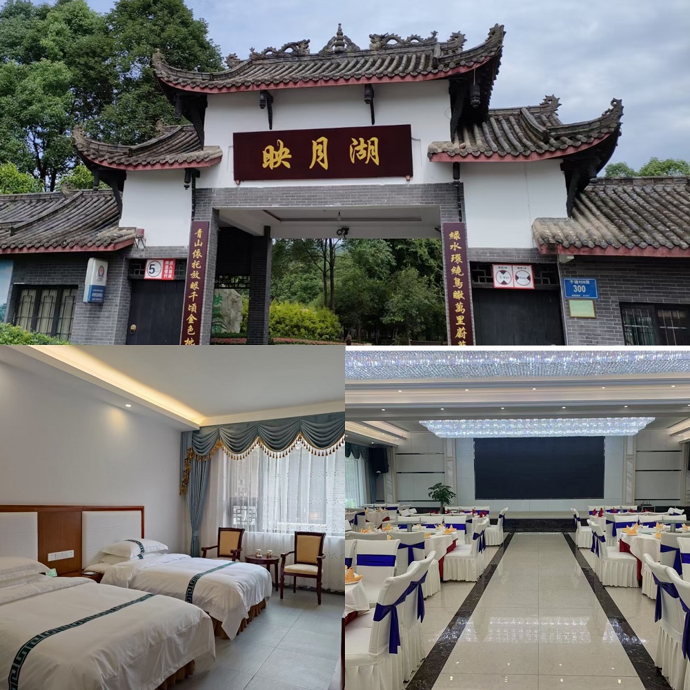 映月湖五星級(jí)鄉(xiāng)村酒店(暨中國(guó)西部枇杷博覽園)地處成都市天府新區(qū)東山大道三段(永興鎮(zhèn)),距成都市區(qū)30余公里。該酒店是以傳統(tǒng)文化為主題,是集婚宴、壽宴、會(huì)議、休閑、拓展、旅游為一體。是成都為數(shù)不多的五星級(jí)鄉(xiāng)村酒店。酒店為川西民居式建筑,古樸典雅,與蒼翠的青山及清澈的湖水珠聯(lián)璧合,四季花開(kāi)、五彩斑斕,使人感到猶如置身世外仙境。店餐廳寬敞明亮,可供1000余人同時(shí)用餐,并備有風(fēng)格各異的豪華包間??腿丝稍谇逍隆?yōu)雅的環(huán)境中享用美味佳肴;酒店各種規(guī)格的茶坊、機(jī)麻包間環(huán)境優(yōu)美;客房有118套房間,環(huán)境舒適溫馨,使客人體驗(yàn)到家的感覺(jué);大中小會(huì)議室9個(gè),音響、話筒、投影等現(xiàn)代化設(shè)備完善;湖畔草坪是您舉行婚禮和拓展的絕佳選擇,高空、水上、地面、CS等拓展訓(xùn)練場(chǎng)地環(huán)境絕佳,是您開(kāi)展拓展訓(xùn)練活動(dòng)的理想場(chǎng)所!